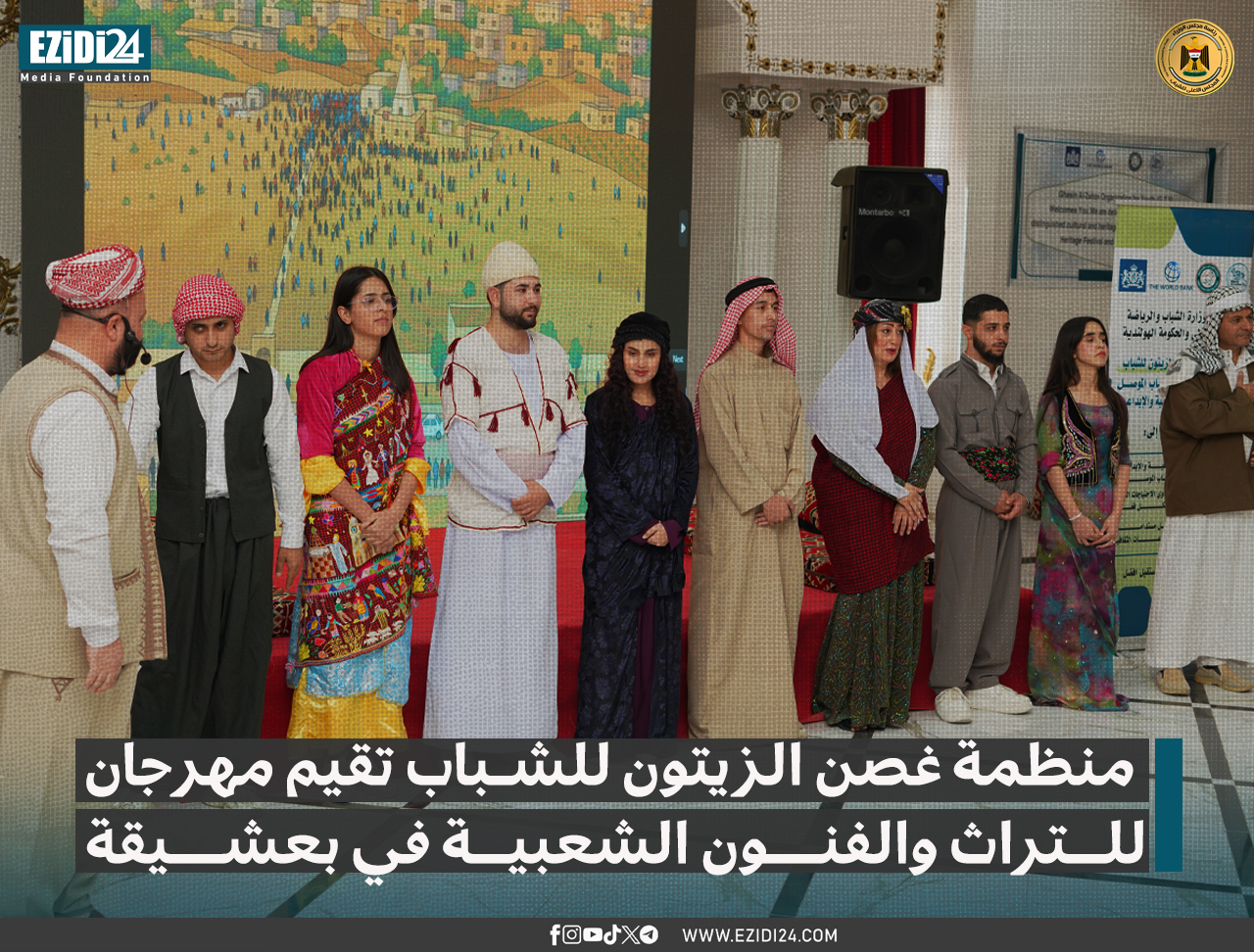 وفي تصريح خاص ل “ايزيدي ٢٤”، قال “غانم الياس”، مدير المنظمة، “بدعمٍ من وزارة الشباب والرياضة والبنك الدولي والحكومة الهولندية، نظّمت منظمة غصن الزيتون للشباب، وبالتعاون مع فرقة سهل نينوى الفلكلورية وملتقى فناني بعشيقة، مهرجانًا ثقافيًا بعنوان “إيقاعنا من جديد – صوت التراث”.