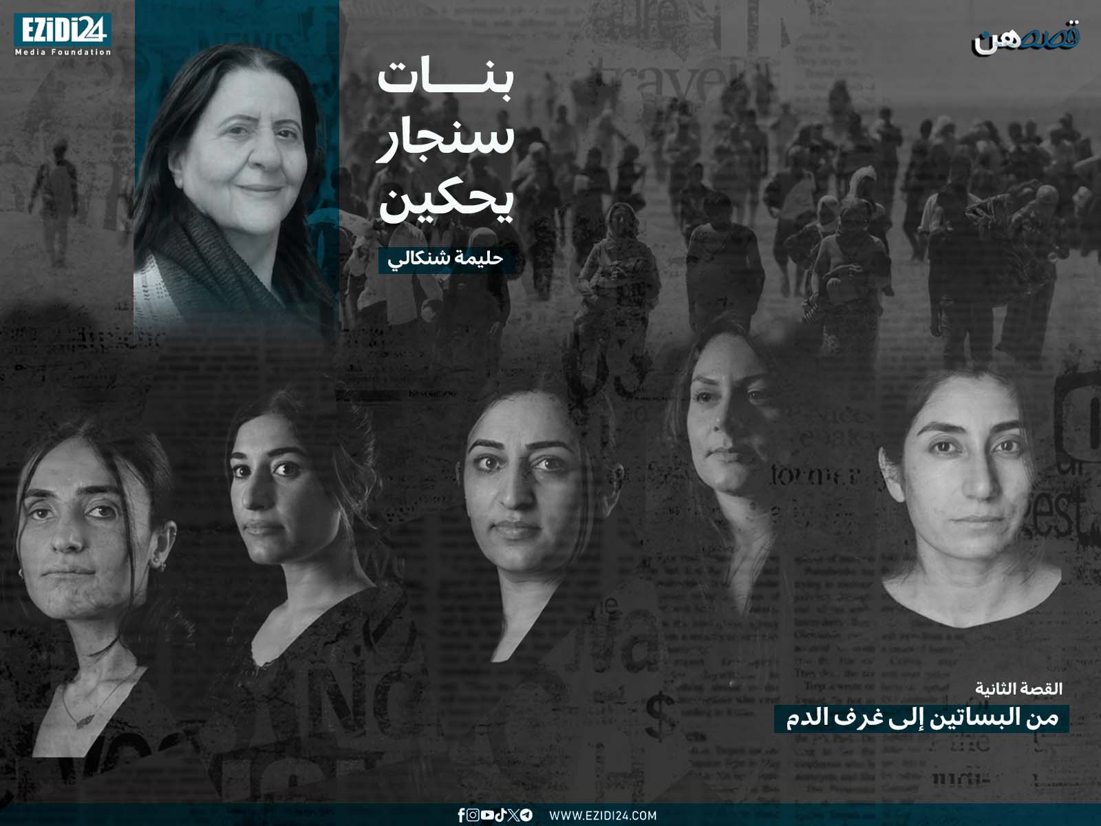 وإذا بالذي كان يهددني كل يوم يأمر بصوت غاضب: -اضربوها لتتأدب هذه الكافرة وخذوها لكم. انهالت الضربات علي ولا أدري ما الذي حدث بعدها. كنت عارية تمامًا عندما أفقت، ملقاة على فراش نتن تنتشر عليه دماء متخثرة. أردت أن أجد شيئًا أستر به نفسي فلم أجد حتى ملابسي. كنت في غرفة أخرى غير الغرفة السابقة؛ إذ كانت هذه بلا شباك، وكانت الجدران تتناثر عليها دماء متيبسة هنا وهناك. فأخذت أُلملِمُ دمي المتخثر الذي ما زال طريًا من على الفراش، مرات ومرات بأصابع كفي اليمنى واليسرى، واتجهت زاحفة إلى الجدران الملطخة أصلًا بالدم، وبدأت أمسح دمائي الطرية بالدماء المتيبسة الساكنة على الجدران. دماء من كانوا هنا في هذا المكان من قبلي من أهلي وأحبابي من بلدتي سنجار.